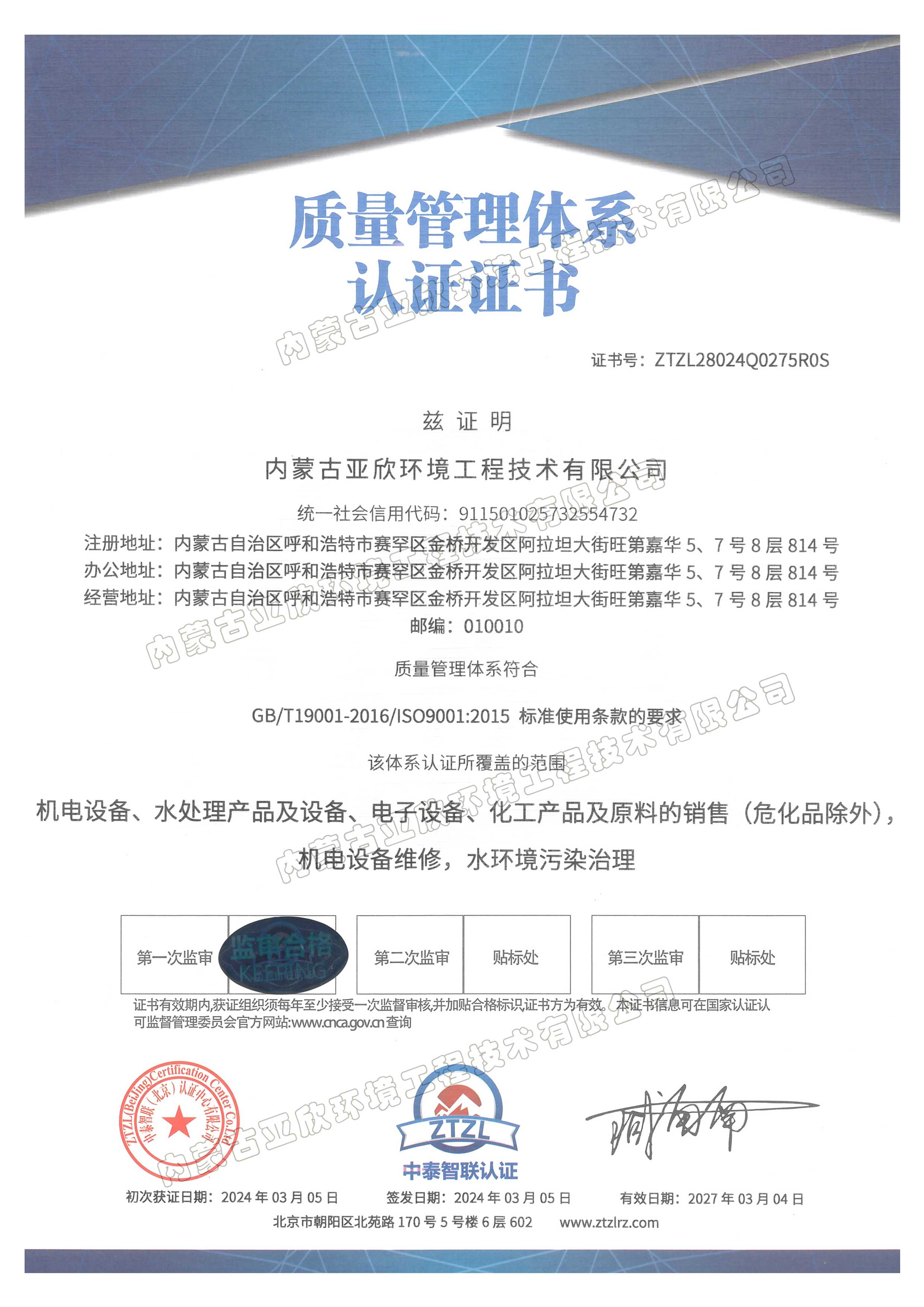 质量体系证书